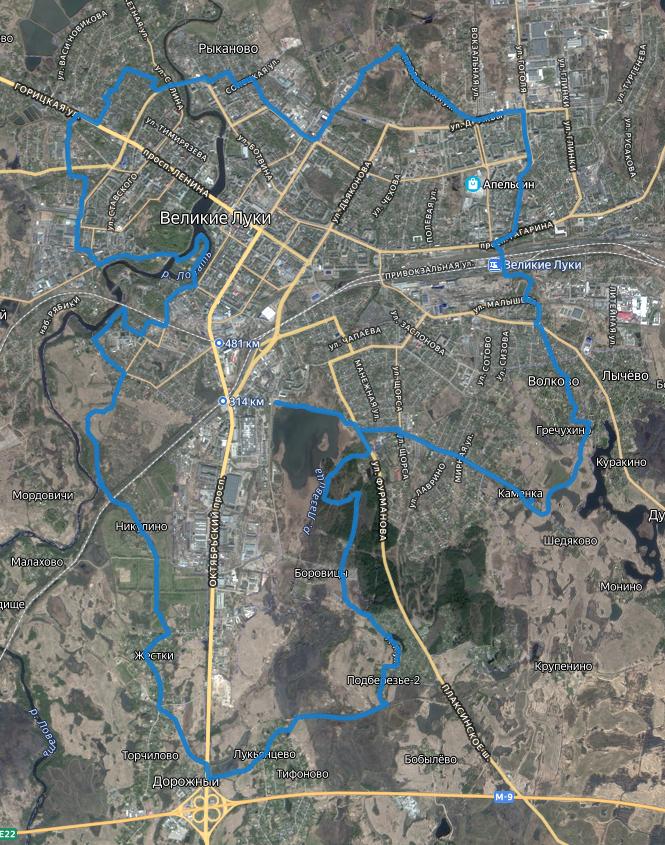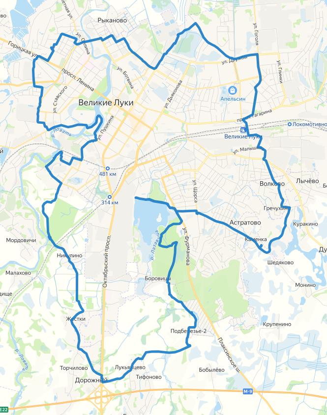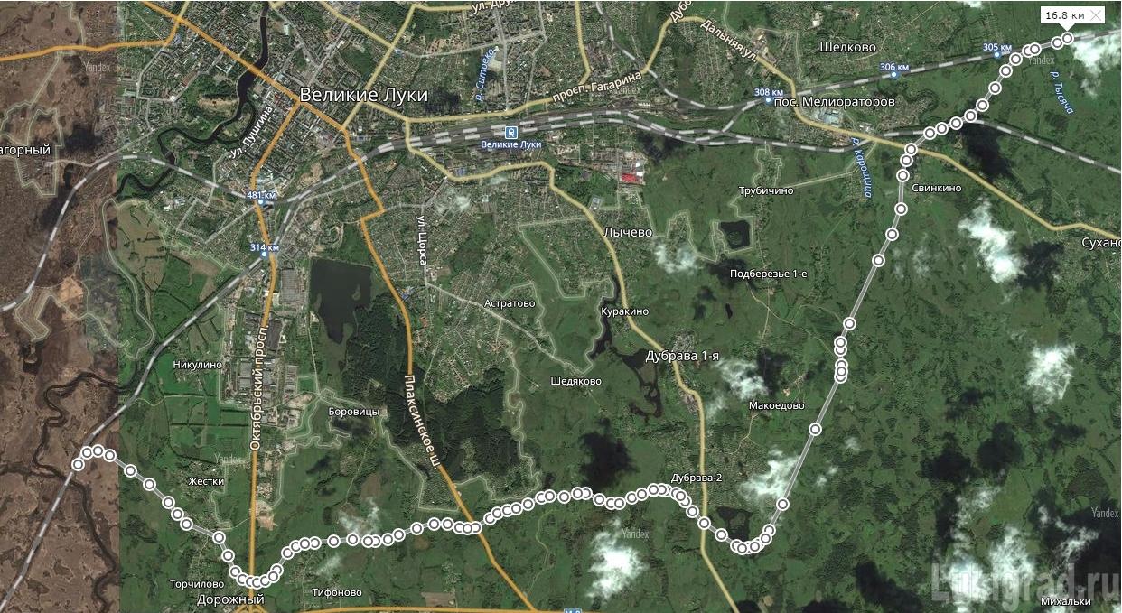 Далее, если смотреть на карту, можно тоже найти множество вариантов пути, ориентируясь на усталость и оставшееся время. Мы же пошли в сторону железнодорожного вокзала, чтобы по пешеходному мосту перейти железнодорожные пути и выйти к юго-восточной границе города, чтобы снова погулять по Великолукскому району. От улицы Матвея Кузьмина пошли по частному сектору, по улице Халтурина и незаметно оказались в деревне Волково, а оттуда пришли в деревню Гречухино.
