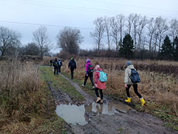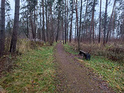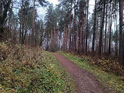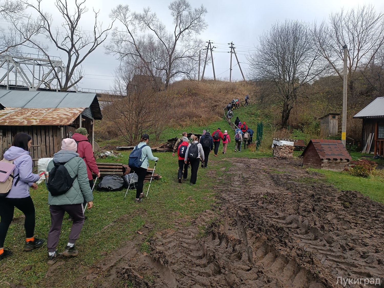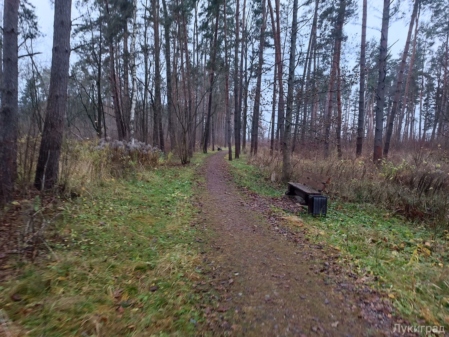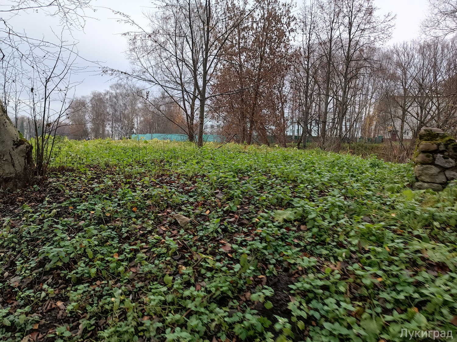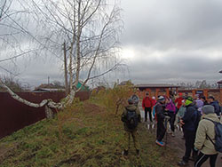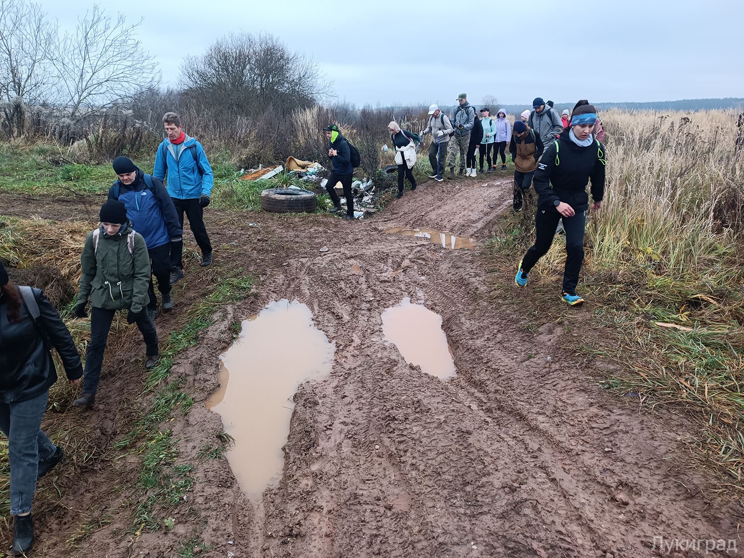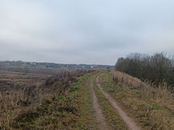 Обсудив, какая всё же холодная (или тёплая) вода, двинулись дальше и за деревней Подберезье свернули на участок железнодорожной насыпи. Не совсем обычной, правда. Со стороны напоминает земляной вал древней крепости. Построена в 1985-86 годах и обходит весь город с юга, соединяясь с действующими железнодорожными путями на западе в районе Касьяновского моста, а на востоке – севернее деревни Свинкино. Протяжённость – около 17 километров. Прошли по ней немного, до поворота на деревню Лукьянцево. Как на пути начнут попадаться кучи мусора, знайте, цивилизация рядом, так что поворот пропустить будет сложно.