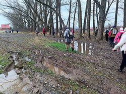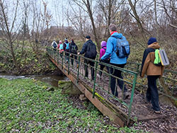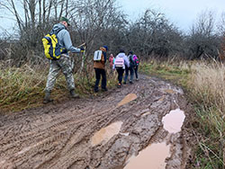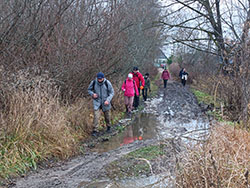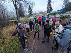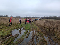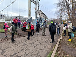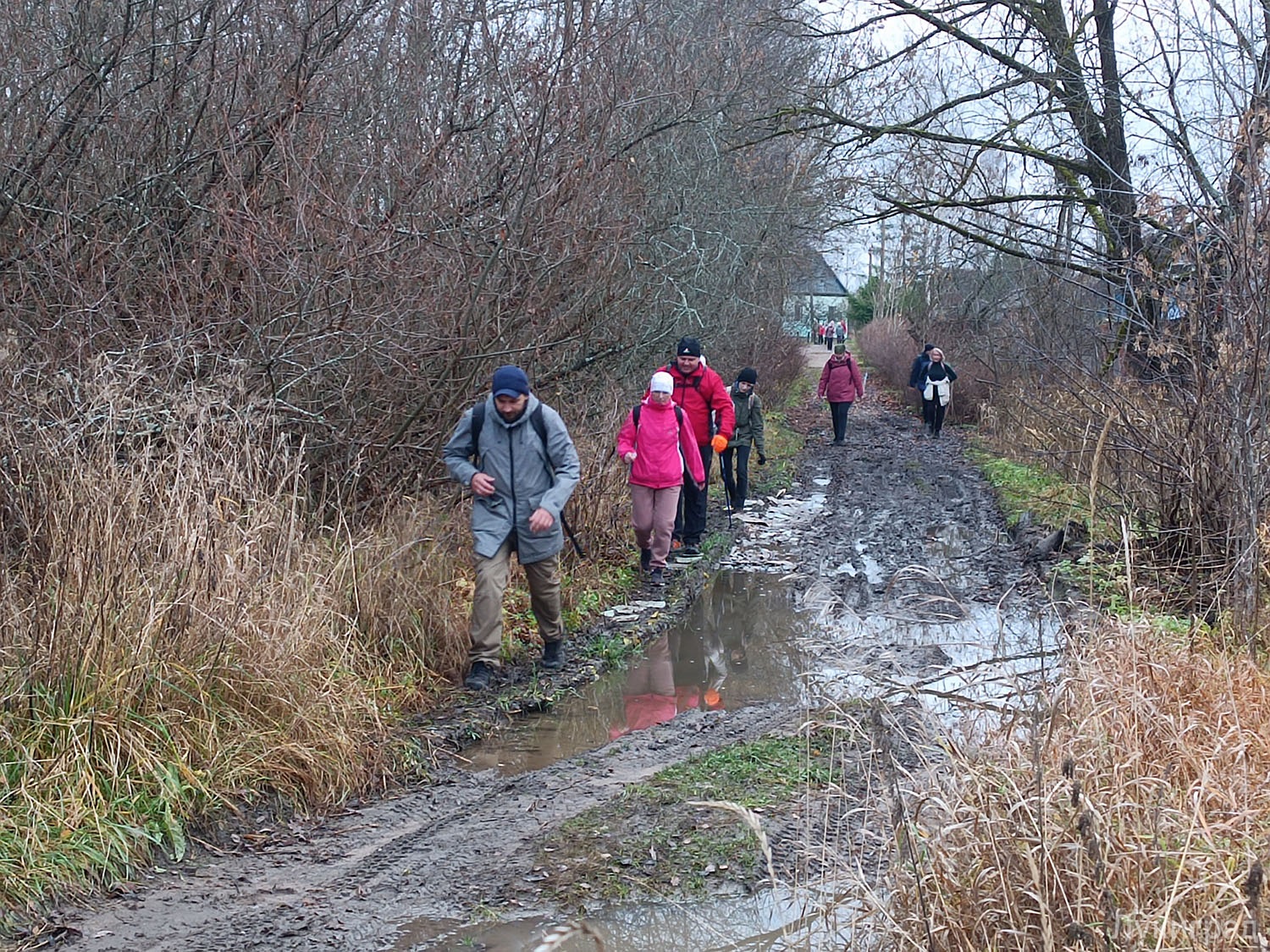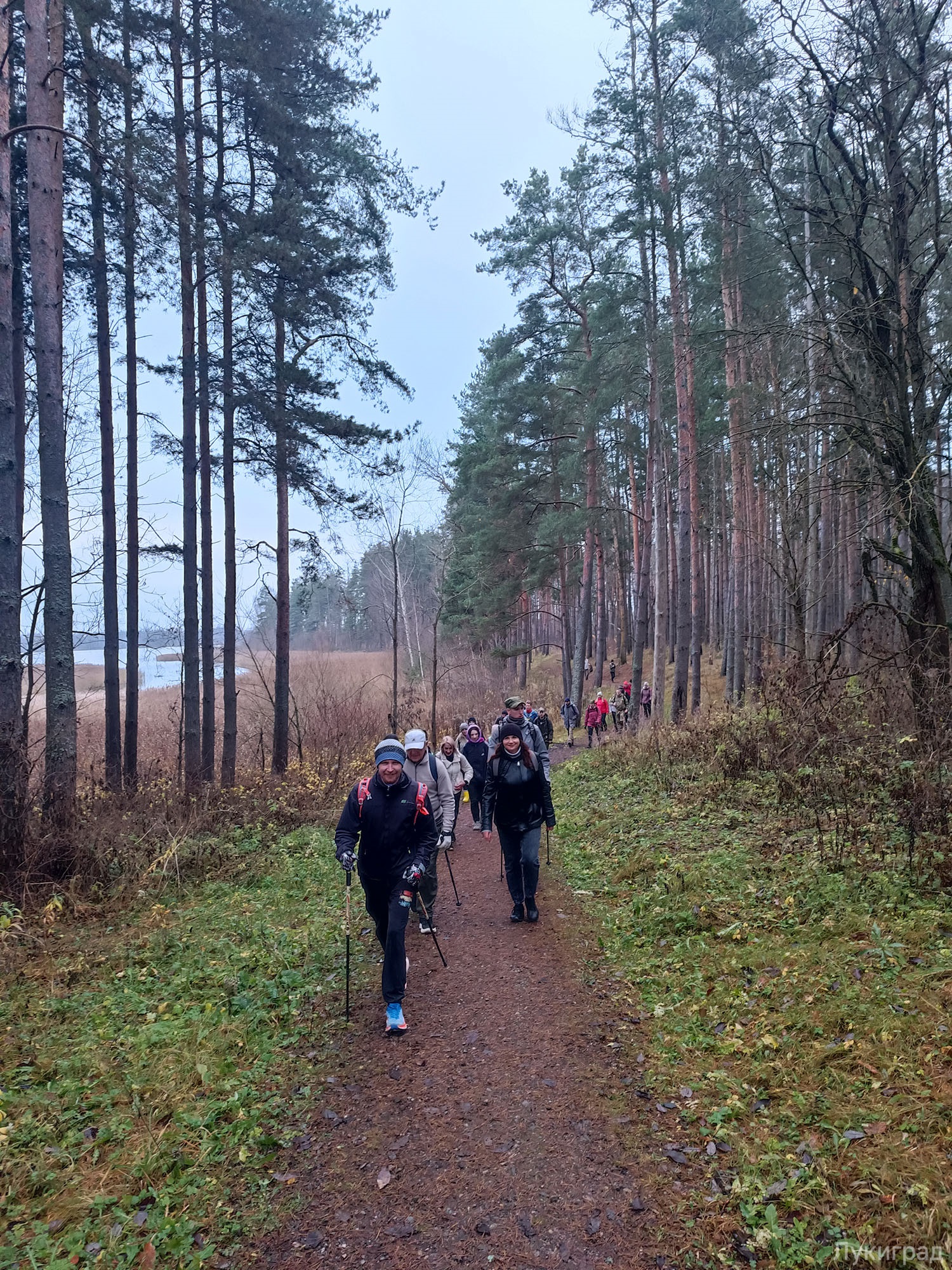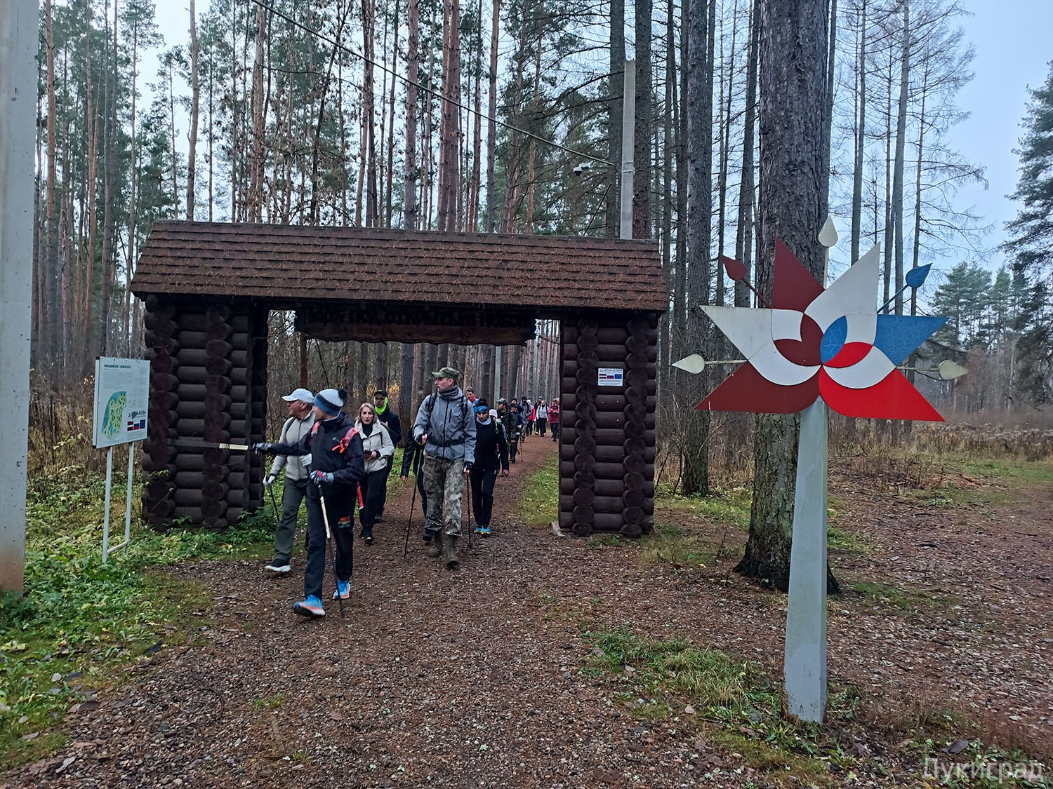 С первых метров пути жижа под ногами сказала «чавк», но, наверное, испугавшись такого количества ног, быстро спряталась, готовясь снова внезапно появиться. Прошли мостиками и тропинками парка «Парк под открытым небом», немного задержавшись там на историко-краеведческие остановки. Зашли на тропу с выхода, вышли через арку на входе, в принципе, в нашем стиле.