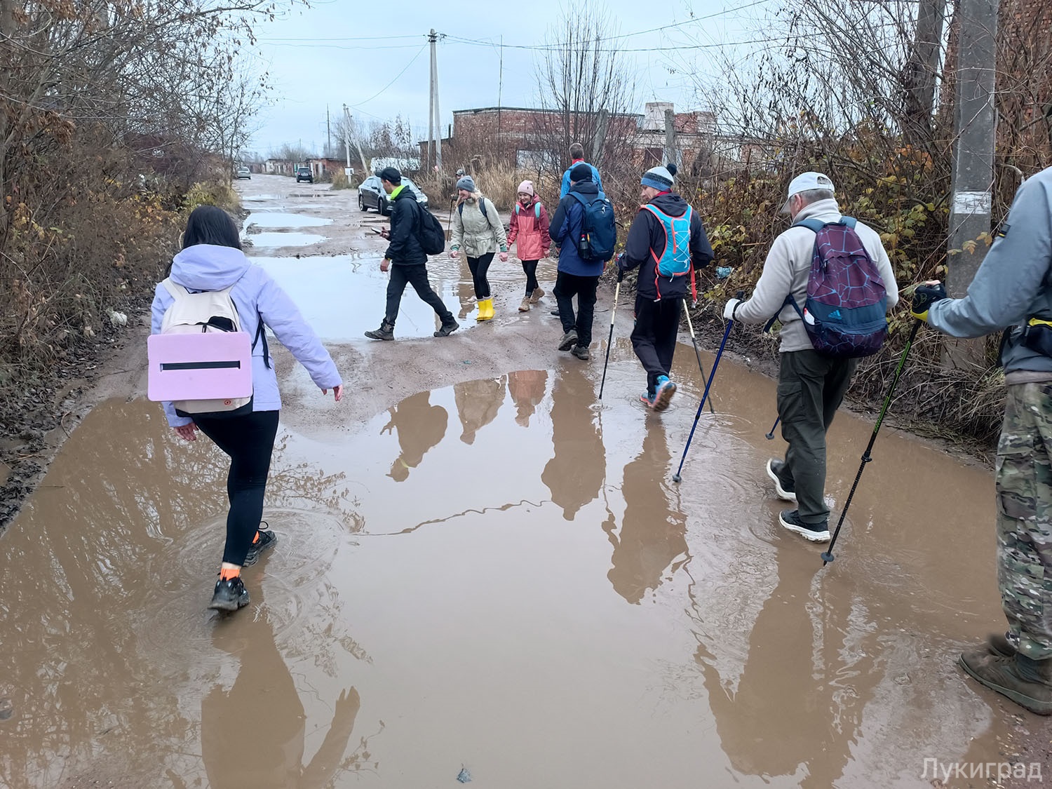 Начали наш путь от бывшего карпопитомника у Зелёной зоны, от стоянки на улице Запрудная. Некоторые участники уже схалтурили и на место старта добрались на авто, истинные же сумасшедшие прибыли туда пешком, добавив в свой шагомер сразу несколько дополнительных километров.