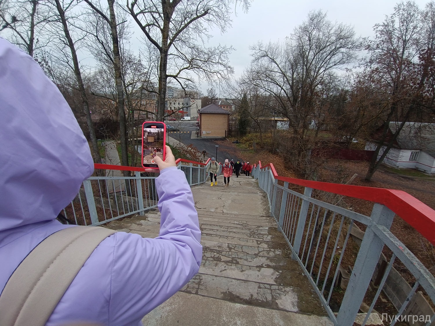 Подкрепились, поделились впечатлениями от первой части похода, отдохнули, и снова в путь, но теперь уже по городской черте. По плану было через Дятлинку перейти на другой берег Ловати, но сначала заглянули на набережную Суворова, где нас ждал очередной сюрприз художественного плана. Но, крутя головой по сторонам, не стоит забывать, что и под ноги тоже нужно смотреть!