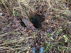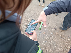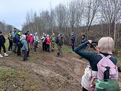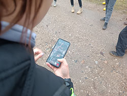 Далее нужно было начинать выходить за городскую черту, и выбор был или идти по обочине по улице Фурманова, или сквозь кладбище, а далее уже в сторону садового товарищества Яблонька и деревни Подберезье-2. В Яблоньке, у искусственного озерка на месте бывшего карьера, нас ждал небольшой сюрприз! Возможно, вы догадаетесь, что фотографируют люди на этом снимке: