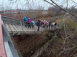 После Лукьянцево выходим к Великолукскому шоссе и, перейдя его по пешеходному переходу, снова попадаем на ту самую железнодорожную насыпь.