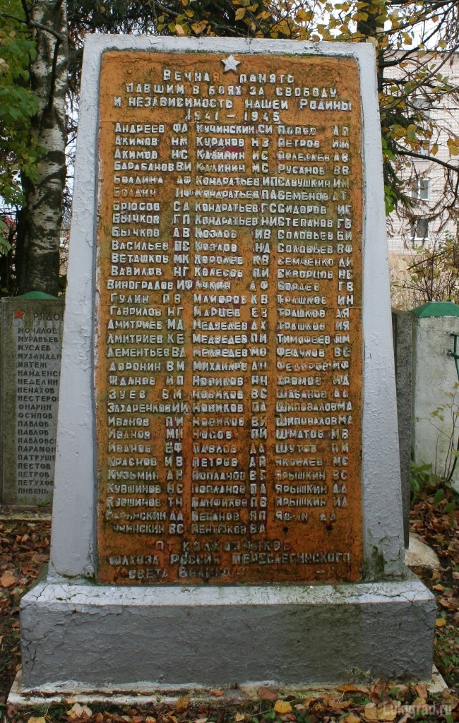 Братское захоронение в деревне Золотково. Первичные захоронения производились с 20 августа 1941 года по 15 января 1943 года. Перезахоронения производились в 1946-1950 годах из деревень: Аршахино, Веснинское, Глинка, Еремеево, Крюково, Копытово, Литвиниха, Липенка, Меленка, Майкино, Маслово, Сергиевская Слобода, Фотьево, Филатиха, Шеболдино, Шуклино.