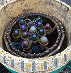 - Цвета окраски конструкции: чаши-факелы светло-золотистые с тёмными вертикальными полосами, декоративный сток между ними – светло-золотистый с тёмными углублениями. Бассейн бетонный, естественного серого цвета. Вокруг бассейна, как и в других Логиновских фонтанах находится клумба, цветы на которой подчёркивают цвета подсветки и перекликаются с ними.