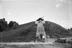 От подножия бастиона к танку ведёт лестница. В верхней части она окаймляет железобетонный колпак дота, оставшегося со времён войны.