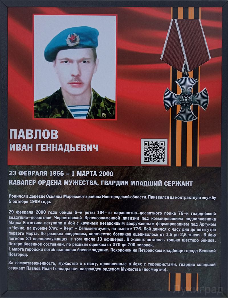 В феврале 2020 года был установлен бюст великолучанину Шикову Сергею Александровичу, десантнику шестой роты