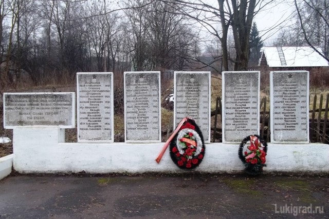 Мемориал расположен в центре деревни у здания администрации Шелковской волости на улице Заводской. Деревня Шелково находится рядом с границей города Великие Луки.